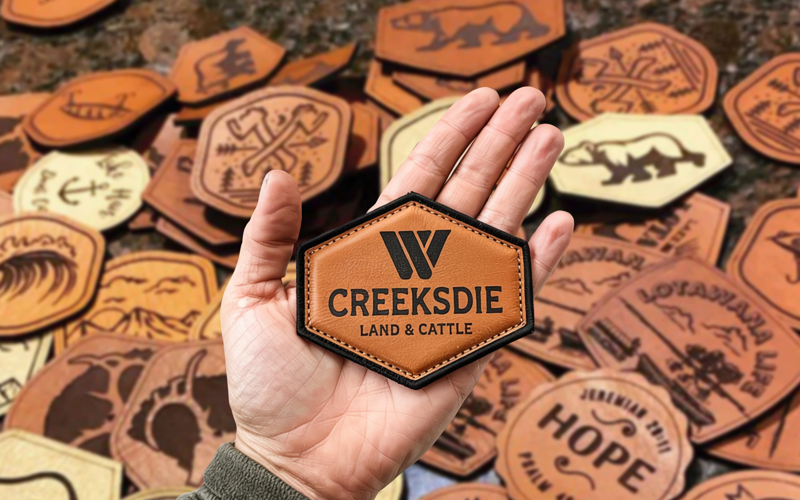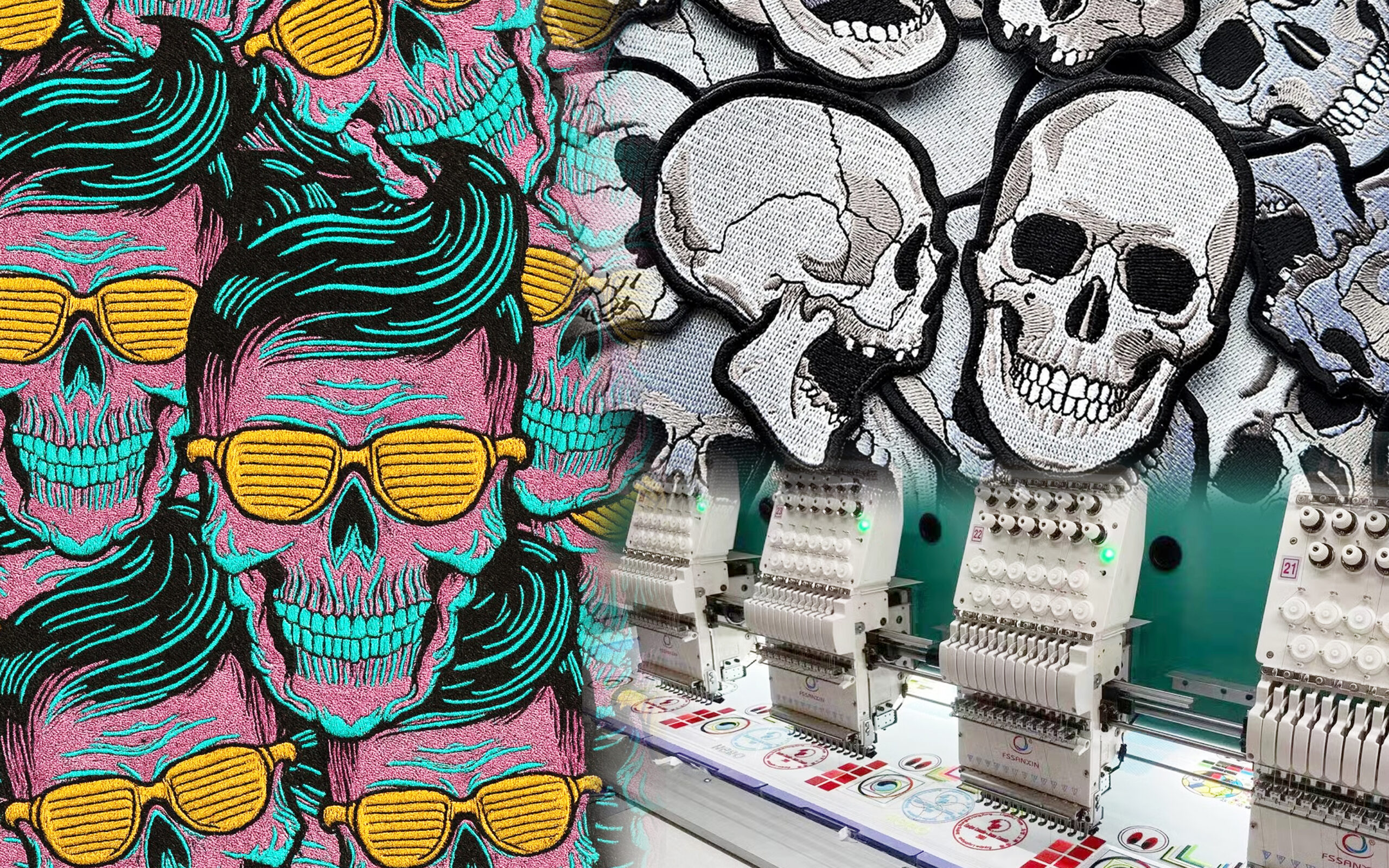 We do custom embroidered patches, sublimated patches, custom Velcro patches, clothing labels, PVC patches, custom leather patches, custom keychains.
